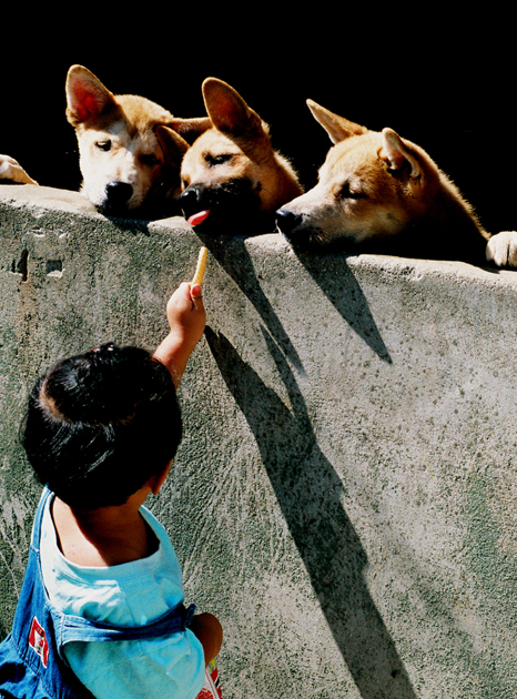 멍멍이들을 약올리는 새우깡.... 아가 언능줘라~~ 개들이 튀어나오기 전에.... ㅡㅡ
